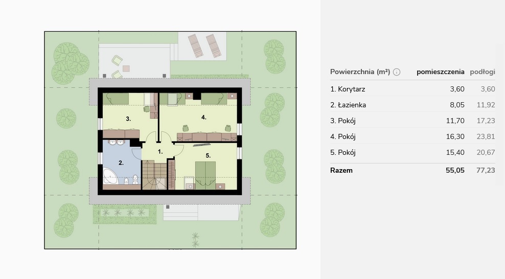- pokój dzienny: 20,55m2