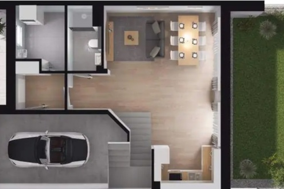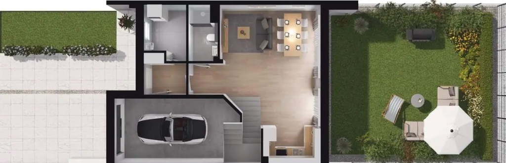 - garaż w bryle budynku