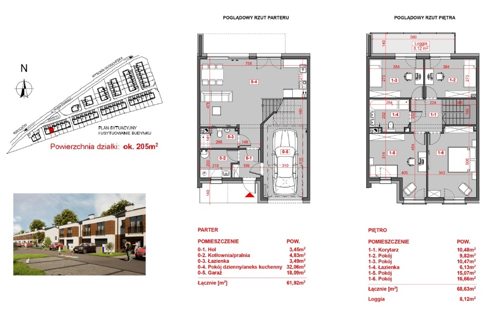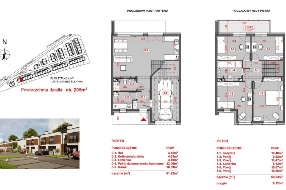 - powierzchnia działki: 205m2