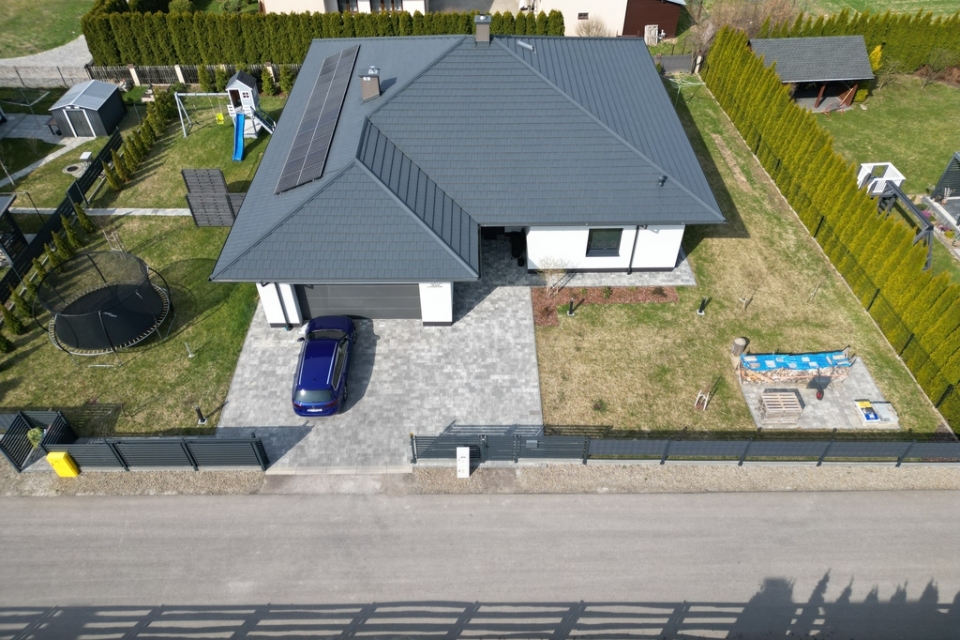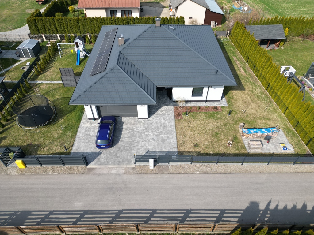 - pokrycie dachu: blachodachówka panelowa