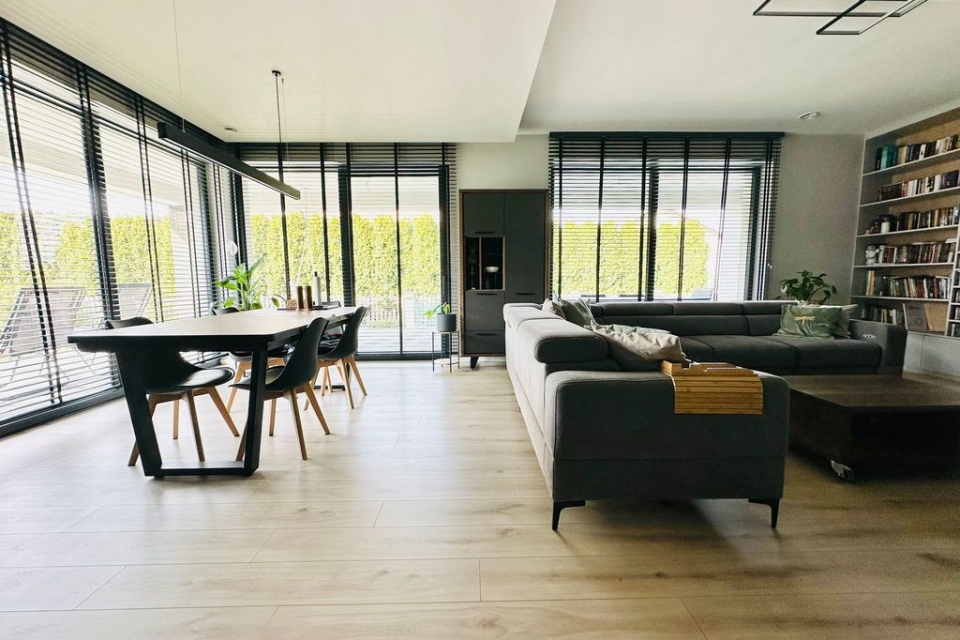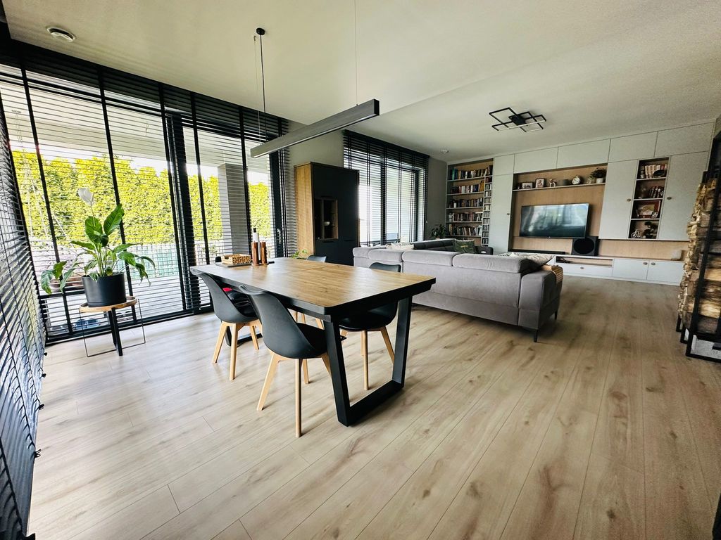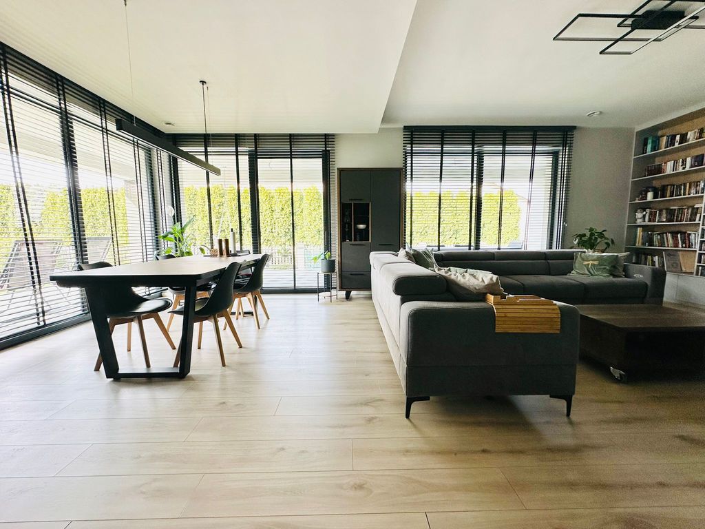 Do sprzedania nowoczesny wolnostojący dom jednorodzinny o powierzchni ok. 196 m2, położony na ponad 10-arowej działce przy ul. Budziwojskiej w Rzeszowie. Na działce znajduje się również wolnostojący garaż wraz z pomieszczeniem technicznym.