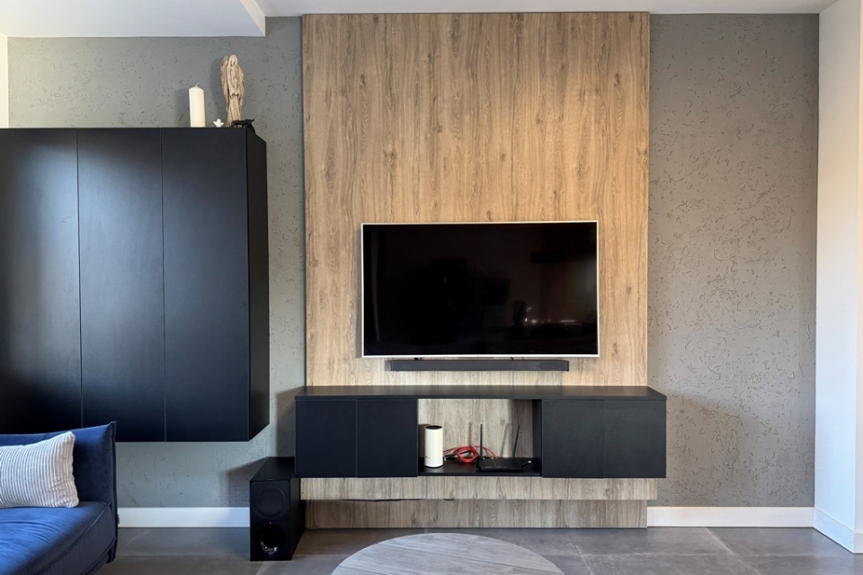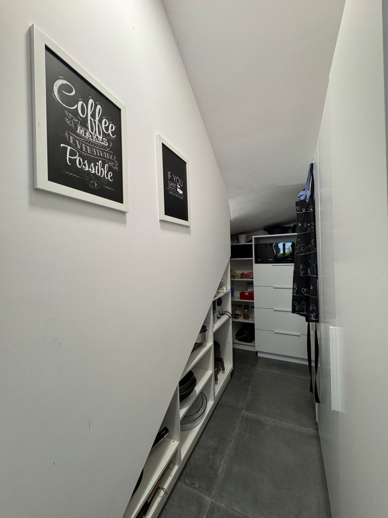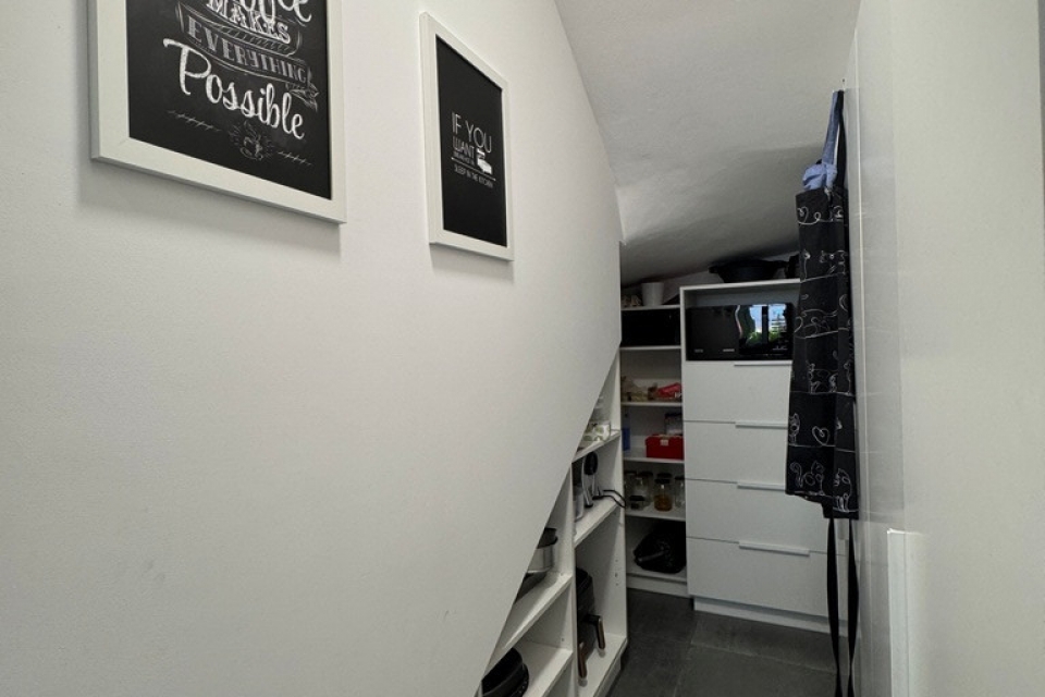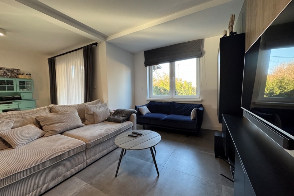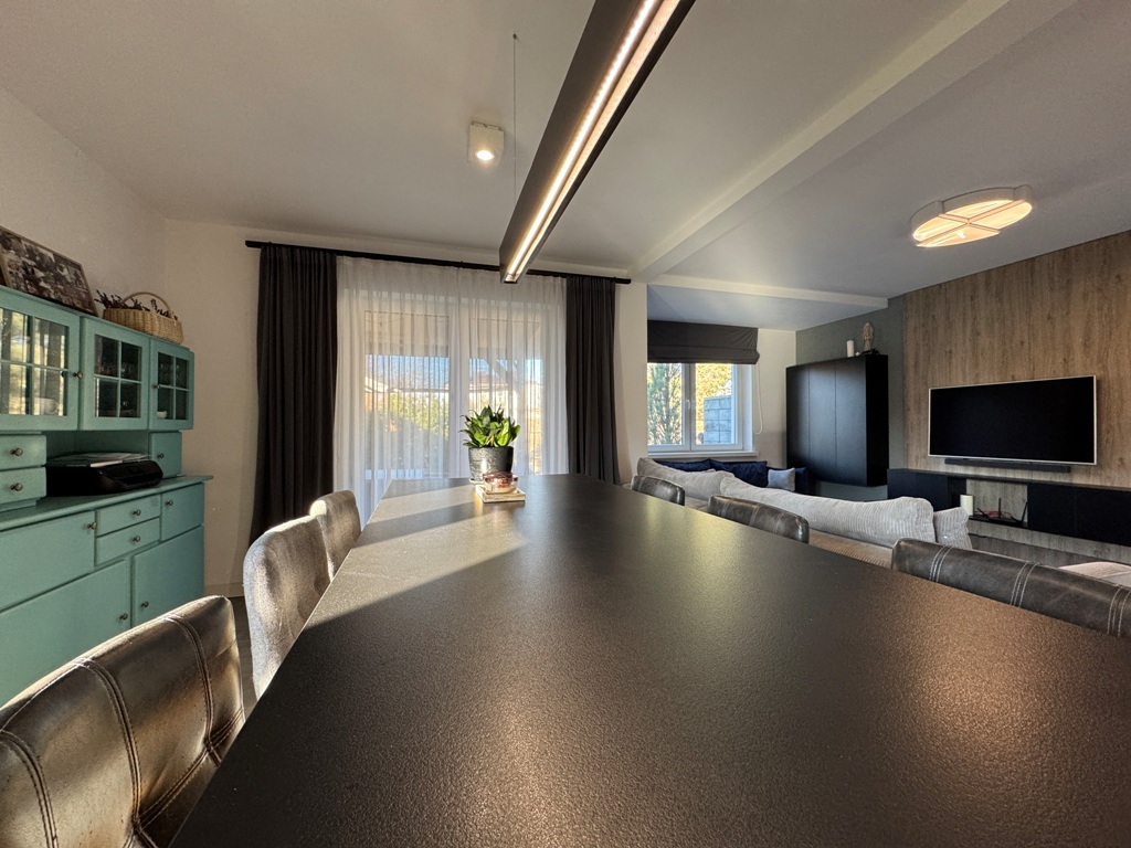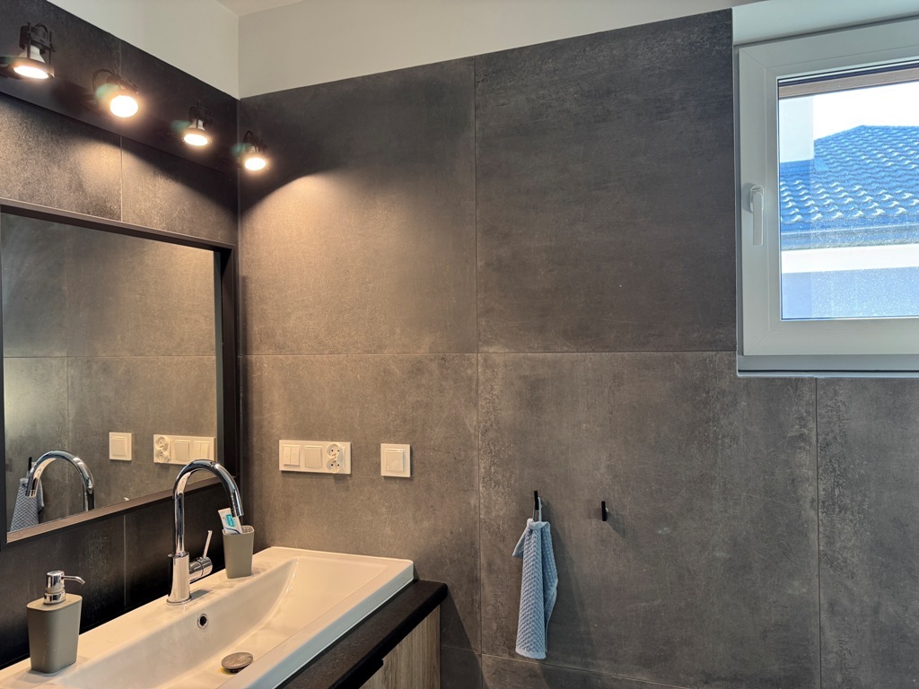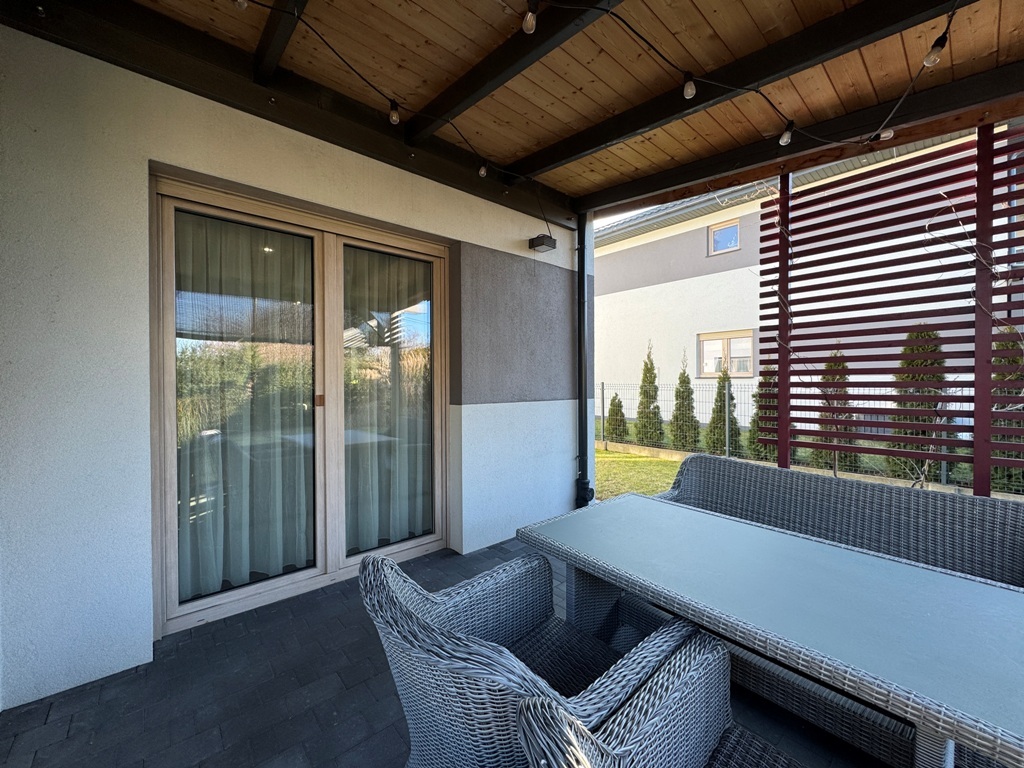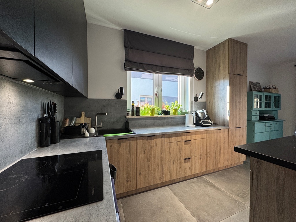 Z zewnątrz bryła domu prezentuje się czysto i spokojnie ale po przekroczeniu progu wita Cię niepowtarzalny styl oraz otwarta, płynna przestrzeń dzienna. Salon i kuchnia to jedno serce domu: salon z dwiema wygodnymi sofami i stolikiem kawowym oraz ściana medialna, kuchnia i jej długa wyspa pełniąca rolę stołu, idealnego na przyjęcia w gronie przyjaciół, matowe czarne fronty dodające charakteru, ciepłe światło stwarza przytulny klimat i widok na taras, gdzie letnie wieczory w otoczeniu ogrodu spędzisz w atmosferze relaksu.