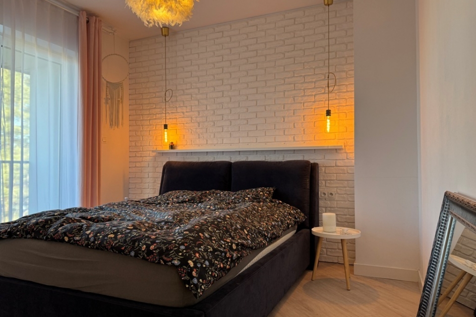 A potem piętro… i Twoja prywatna oaza. Główna sypialnia – prywatny apartament z garderobą , łazienką i balkonem. Łóżko king-size ze ścianką telewizyjną. Tu rano budzisz się z uczuciem, że wszystko jest na właściwym miejscu.