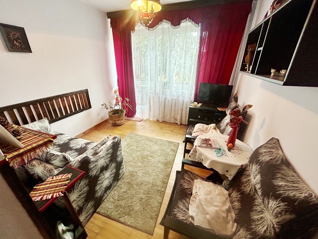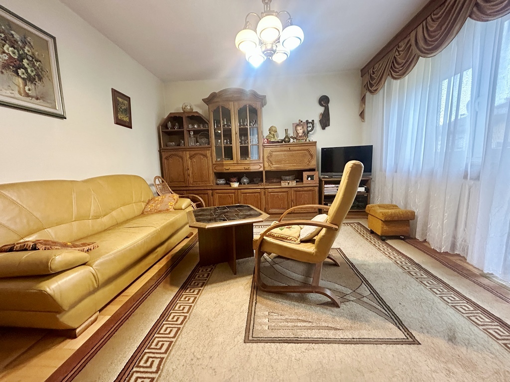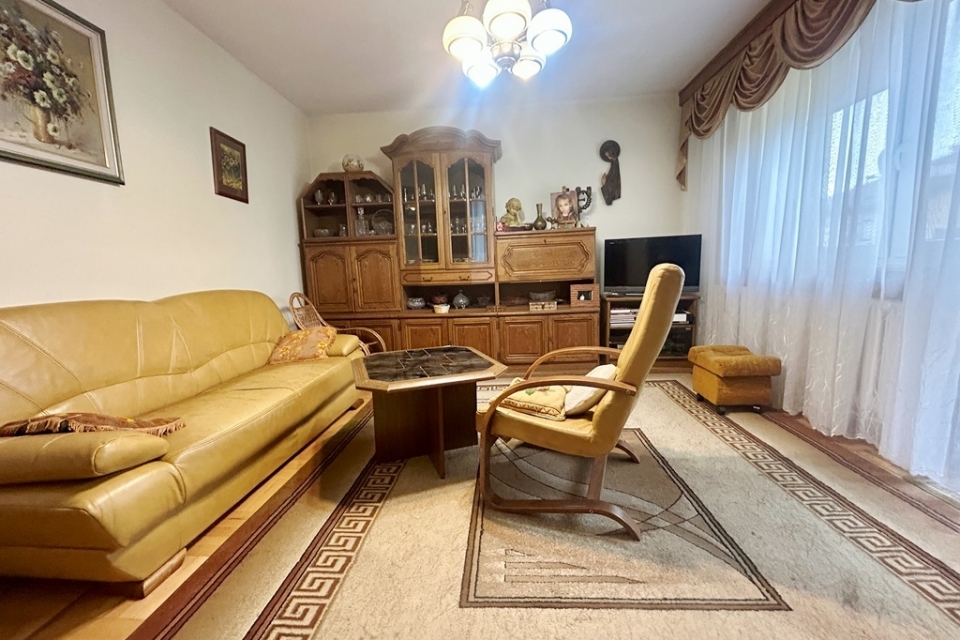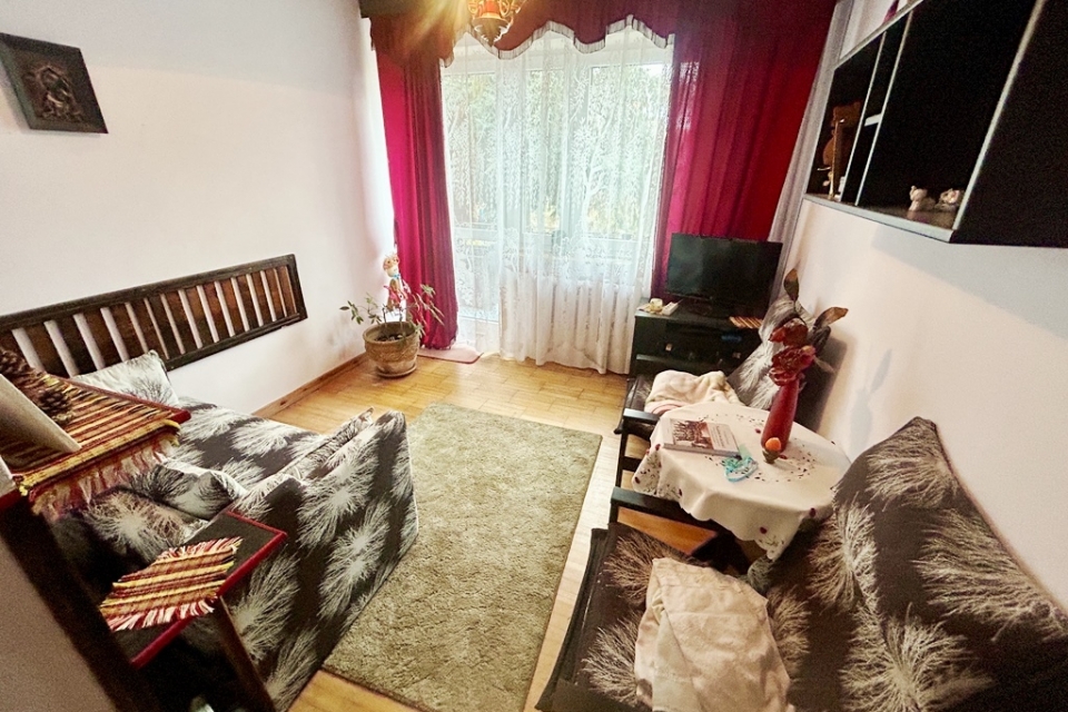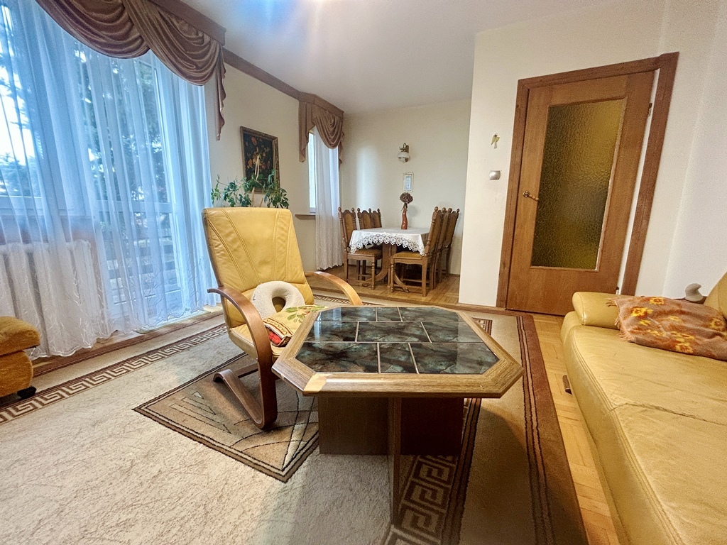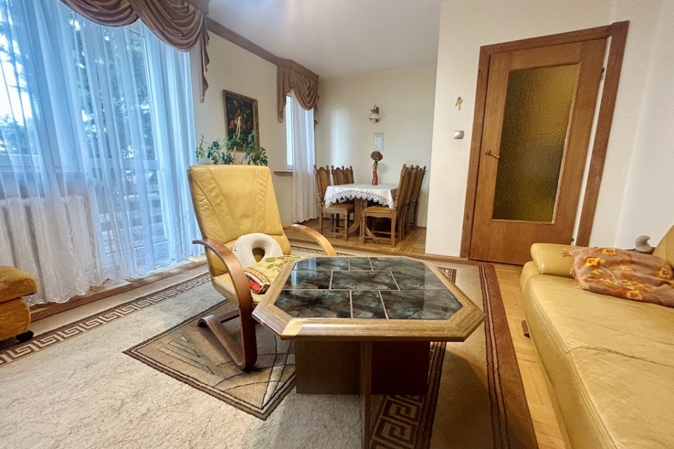 - salon z wyjściem na balkon z zejściem do ogrodu