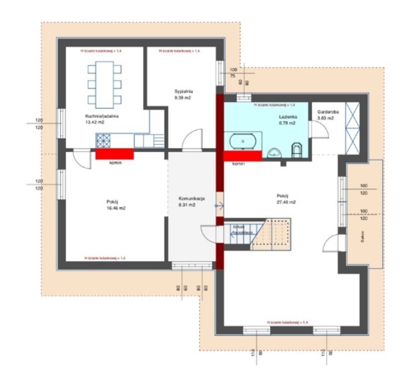- powierzchnia: 262m2- całkowita, 196m2- użytkowa
