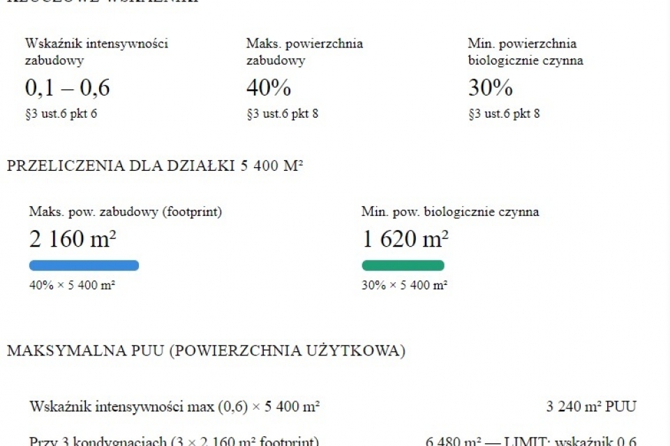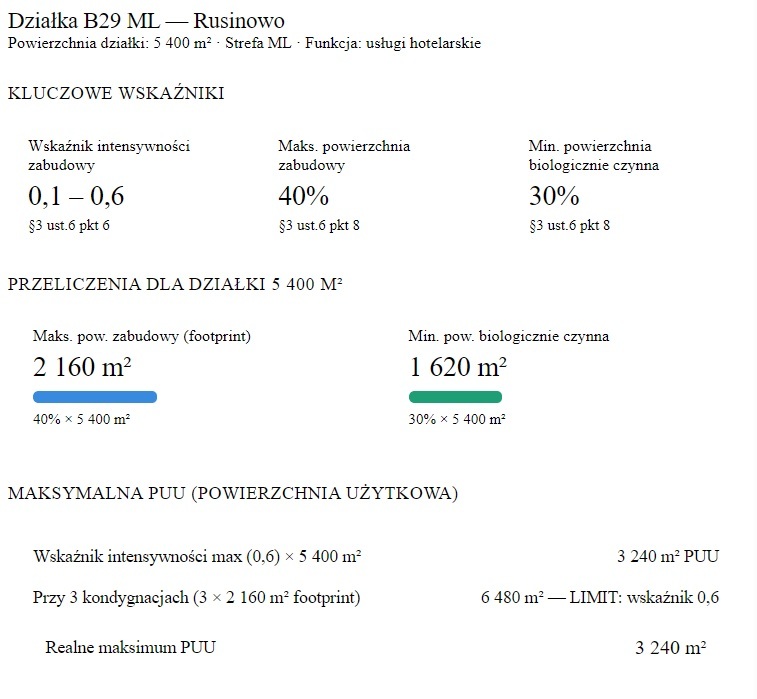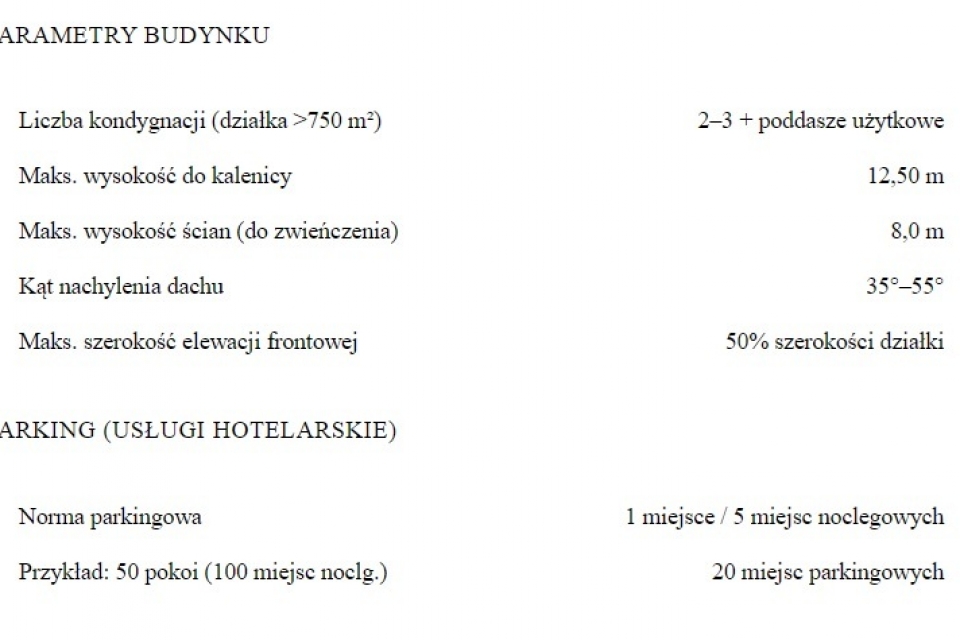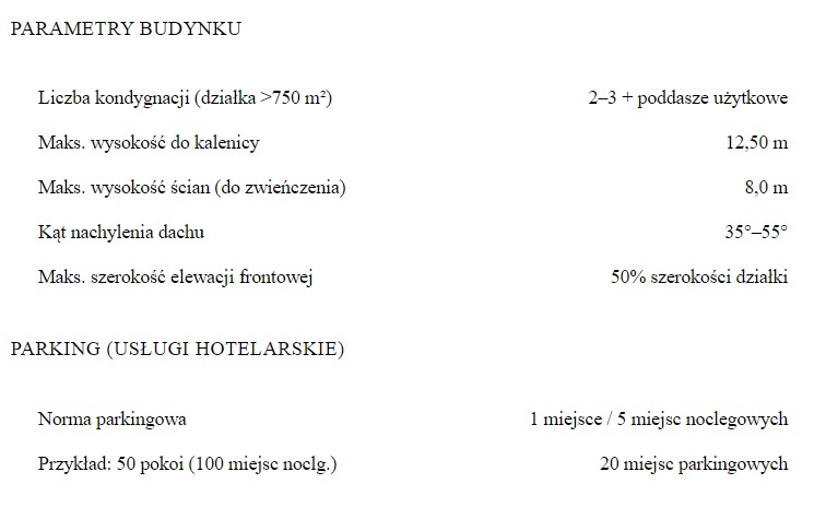 Te parametry z MPZP przekładają się na możliwość wybudowania hotelu o powierzchni użytkowej do 3 240 m2