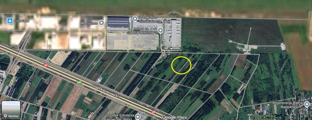 Działka sąsiaduje z lotniskiem Rzeszów Jasionka oraz z firmami Panattoni, InPost i tp.