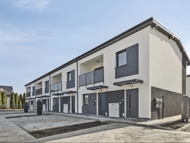 Inwestycja obejmuje 40 mieszkań 3-pokojowych w segmentach dwukondygnacyjnych.