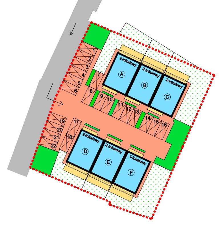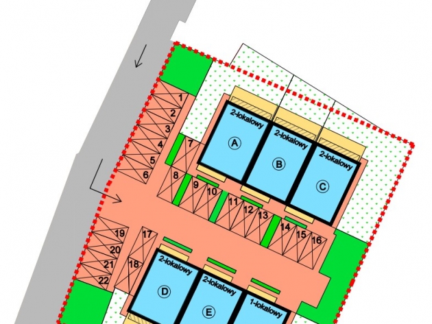 Do każdego mieszkania przypisane są dwa miejsca postojowe — jedno w cenie mieszkania, drugie dodatkowo płatne.