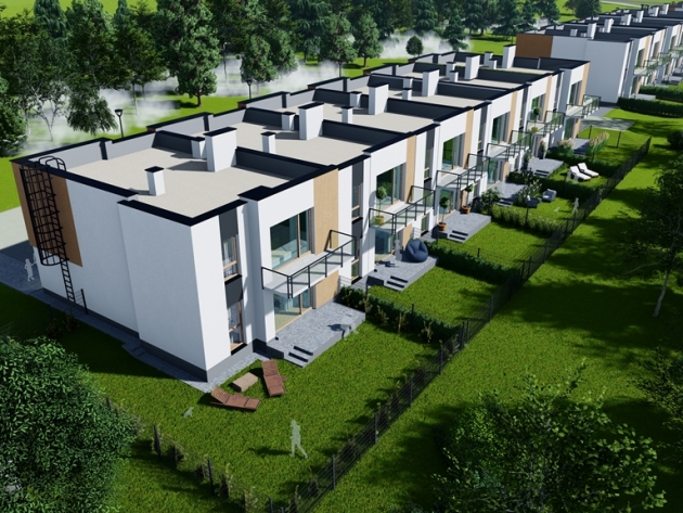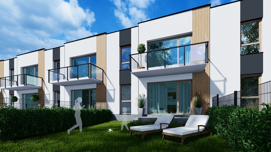 - Zabudowa szeregowa (indywidualne wejście do każdego mieszkania)