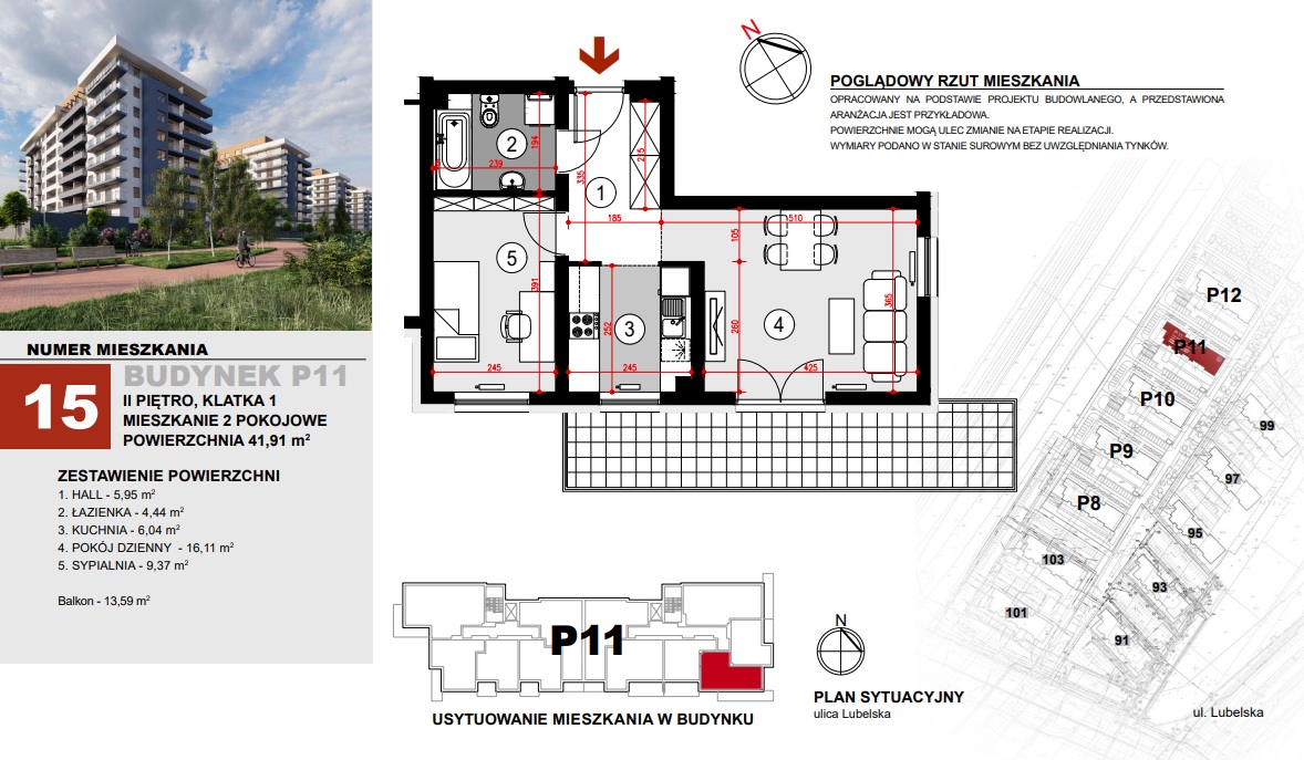 | P11-15 | 2 | 2 | 41.91 m2 | 18 500zł- miejsce postojowe zewnętrzne | 11 300 .00 zł | 473 600 zł | Wolne | Pobierz |