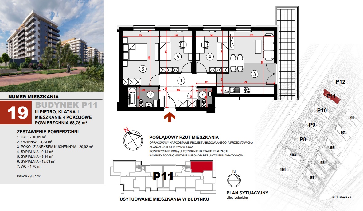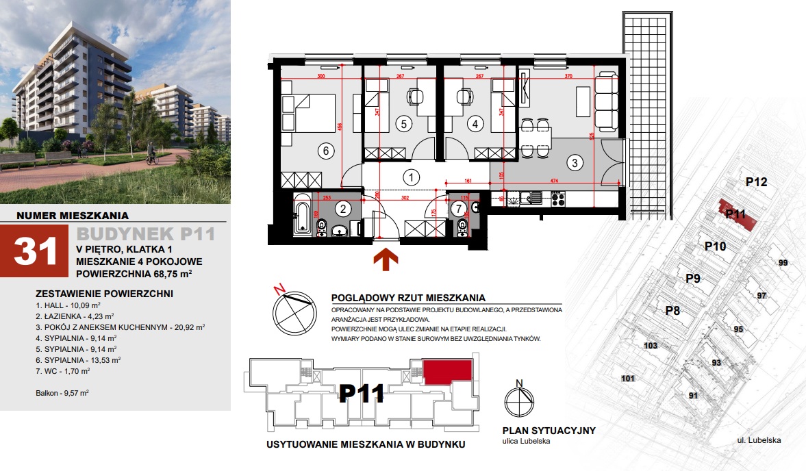 | P11-7 | 1 | 4 | 68.75 m2 | 56 600zł- miejsce w garażu + kom.lok. | 9 500 .00 zł | 653 100 zł | Wolne | Pobierz |