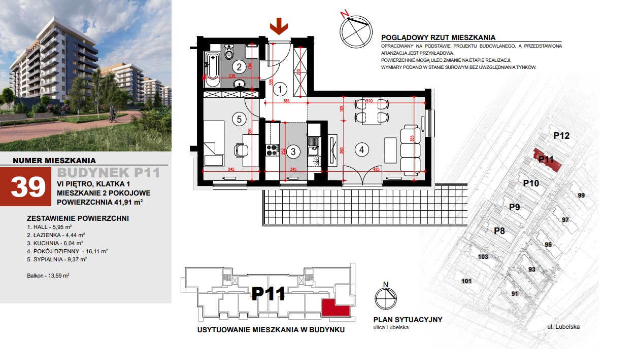 | P11-39 | 6 | 2 | 41.91 m2 | 18 500zł- miejsce postojowe zewnętrzne | 11 300 .00 zł | 473 600 zł | Wolne | Pobierz |