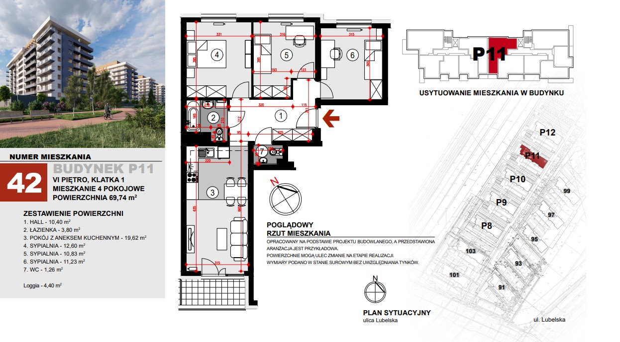 | P11-42 | 6 | 4 | 69.74 m2 | 52 800zł- miejsce w garażu z kom.lok. | 9 300 .00 zł | 648 600 zł | Wolne | Pobierz |