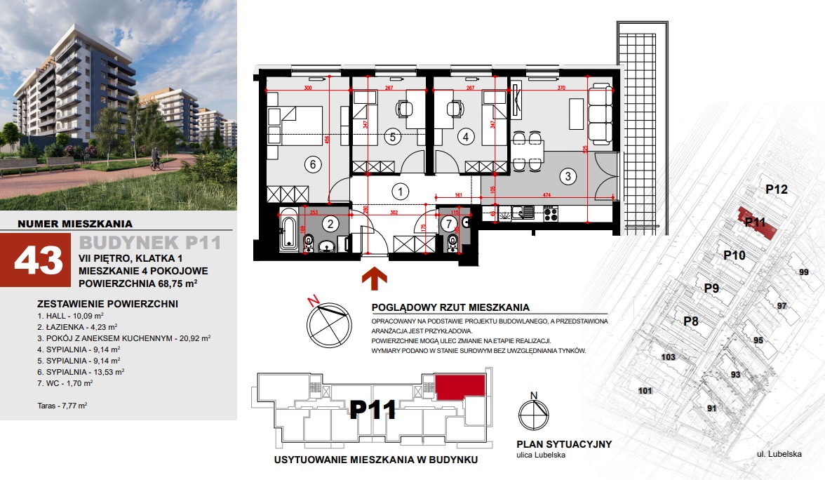 | P11-43 | 7 | 4 | 68.75 m2 | 66 500zł- miejsce w garażu z miejscem na rowery+ kom.lok. | 9 500 .00 zł | 653 100 zł | Wolne | Pobierz |