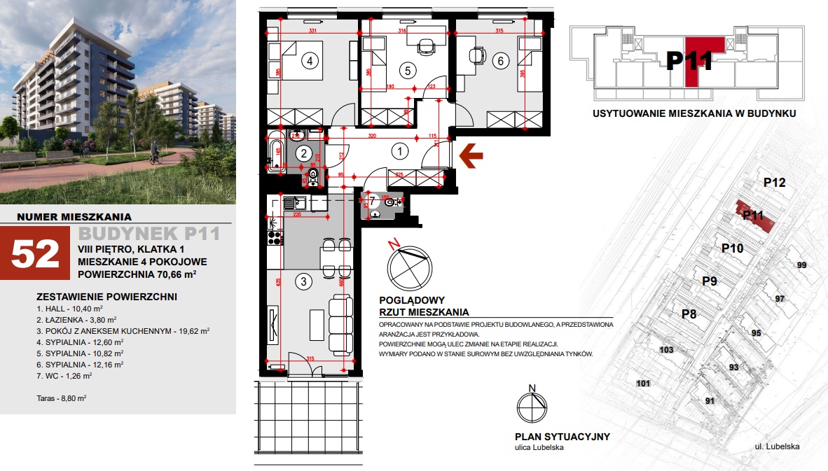 | P11-52 | 8 | 4 | 70.66 m2 | 51 200zł- miejsce w garażu z miejscem na rowery | 9 117 .00 zł | 664 200 zł | Wolne | Pobierz |