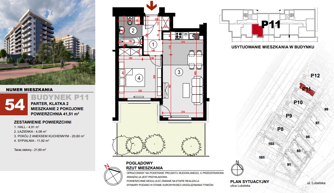 | P11-54 | 0 | 2 | 41.51 m2 | 11 000zł- miejsce postojowe zewnętrzne | 10 701 .00 zł | 444 200 zł | Wolne | Pobierz |