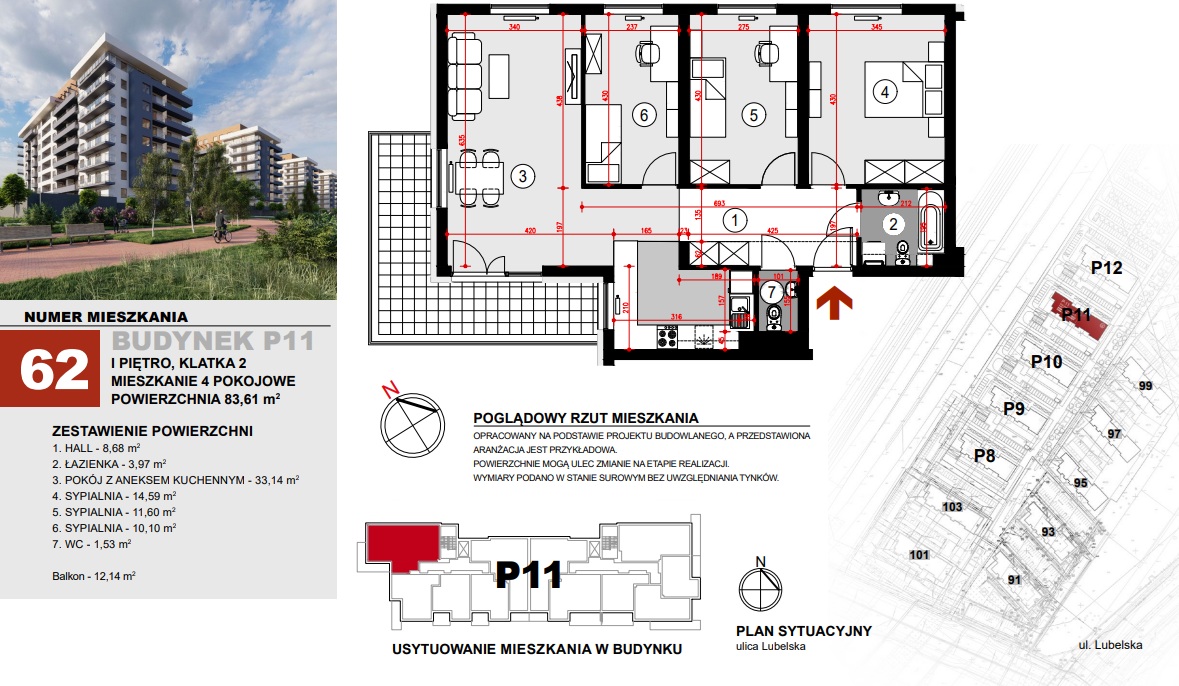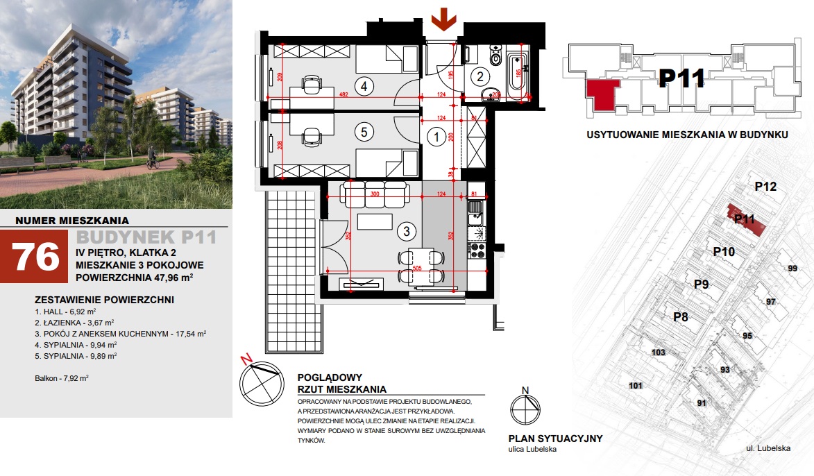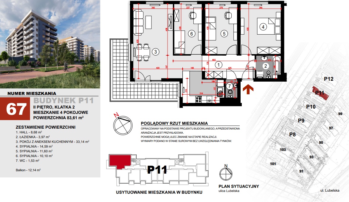 | P11-89 | 7 | 2 | 46.51 m2 | 18 500zł- miejsce parkingowe zewnętrzne | 10 901 .00 zł | 507 000 zł | Wolne | Pobierz |