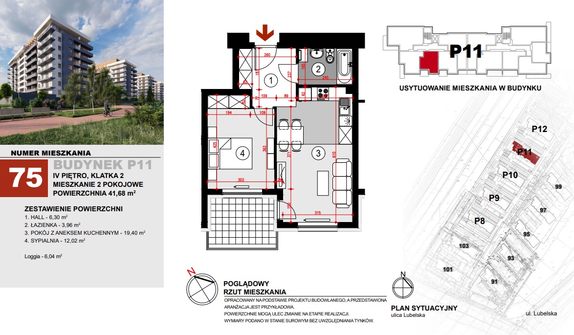 | P11-75 | 4 | 2 | 41.68 m2 | 18 500zł- miejsce postojowe zewnętrzne | 10 701 .00 zł | 446 000 zł | Wolne | Pobierz |