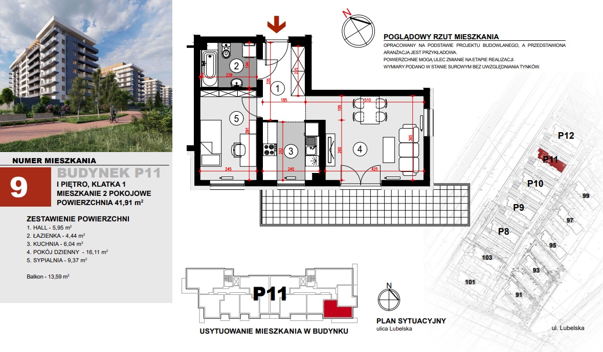 | P11-9 | 1 | 2 | 41.91 m2 | 22 000zł- miejsce parkingowe zewnętrzne + kom.lok. | 11 300 .00 zł | 473 600 zł | Wolne | Pobierz |