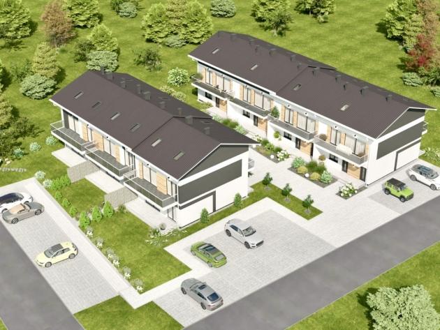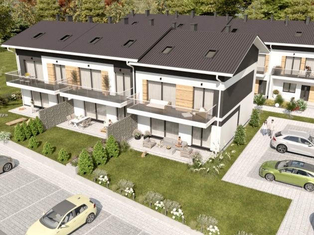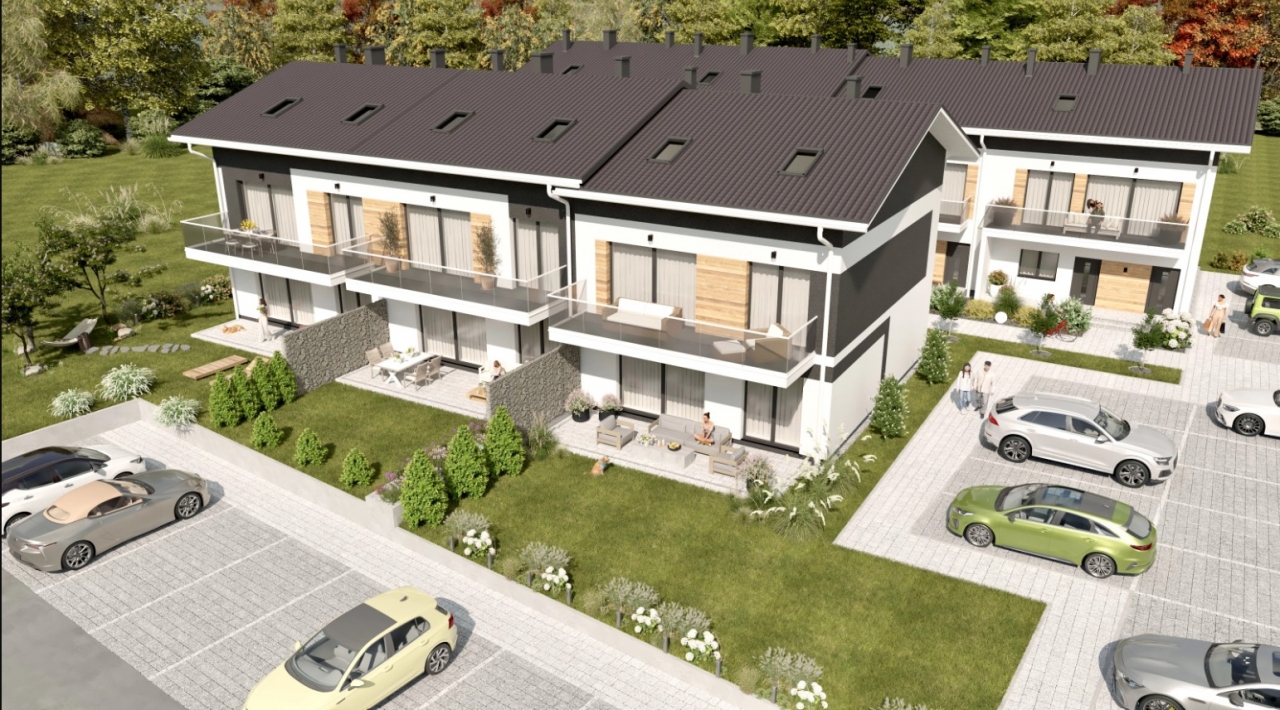 Nowe osiedle mieszkań w zabudowie dwulokalowej, składające się z 7 nowoczesnych budynków, w których znajduje się łącznie 14 mieszkań.
