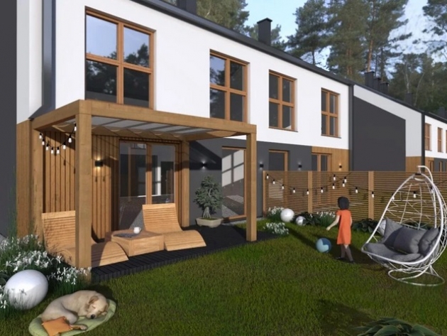 Każdy dom oferuje 5 przestronnych pokoi na dwóch kondygnacjach, funkcjonalny układ pomieszczeń oraz wysoką jakość wykonania. Zastosowano nowoczesne technologie, w tym pompę ciepła, gwarantującą komfort i niskie koszty eksploatacji.