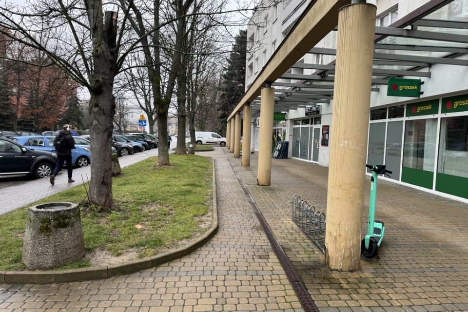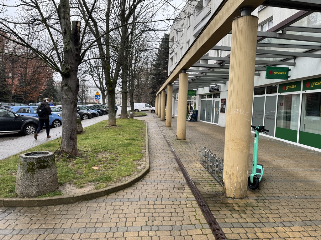 Lokal znajduje się na parterze w budynku usługowo-mieszkalnym