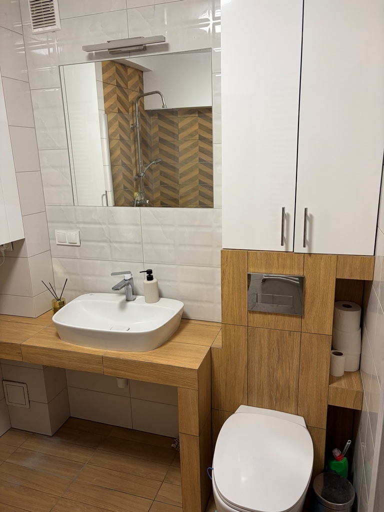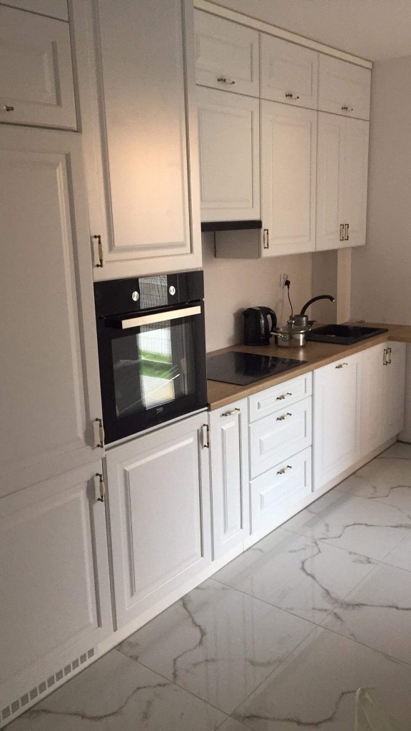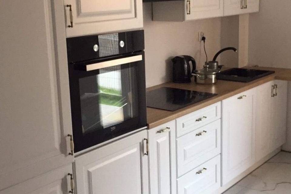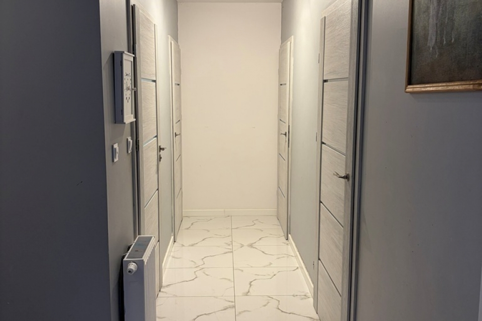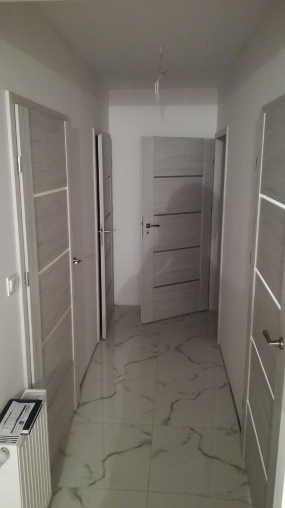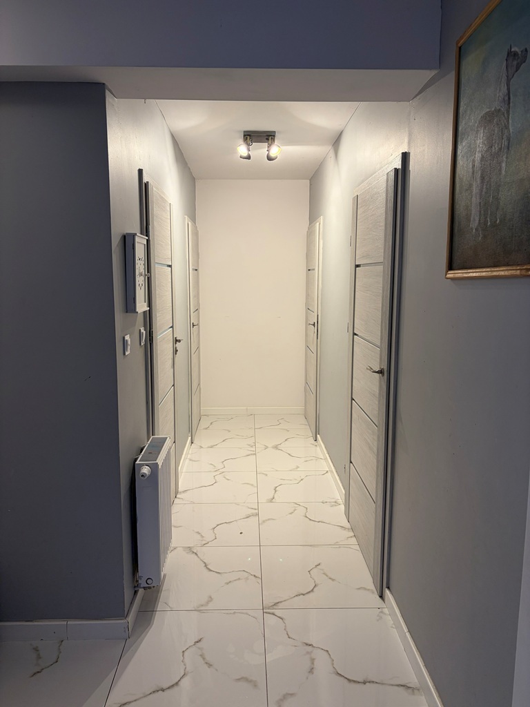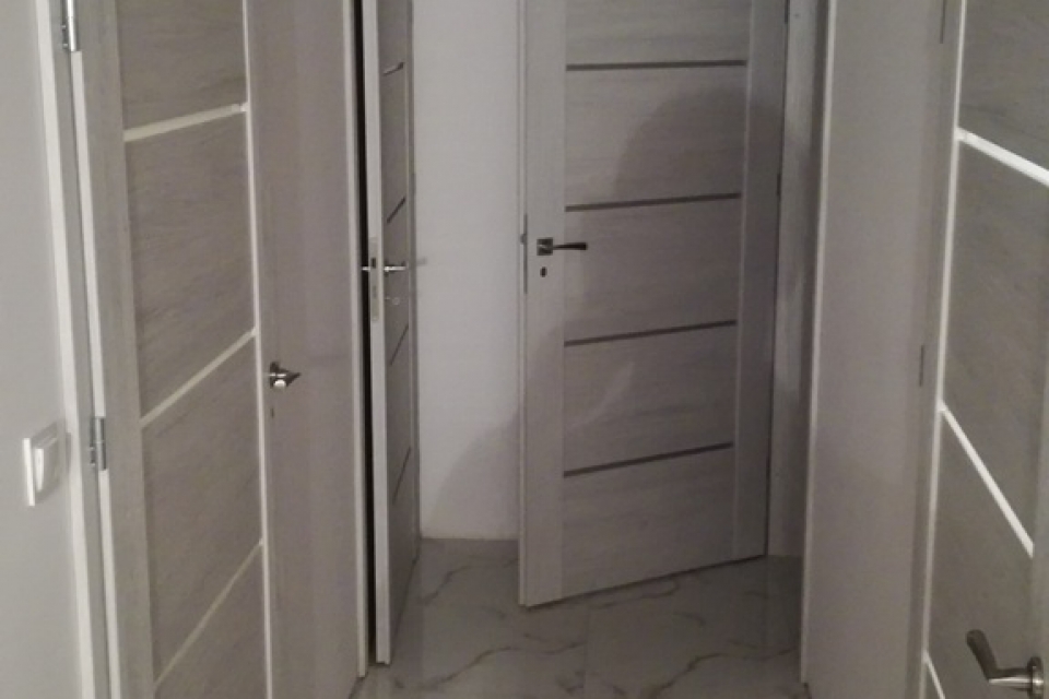 - podłogi: panele w pokojach, płytki w łazience, kuchni i przedpokoju