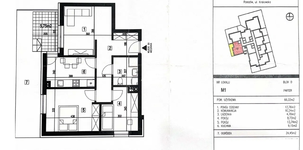 - mieszkanie o powierzchni 60,12m2 z tarasem 24,45m2