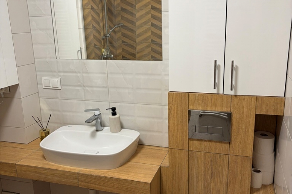 - czynsz: 490 zł na 2 osoby w tym (czynsz administracyjny, śmieci, zaliczka na zimną wodę, energia elektryczna w częściach wspólnych)