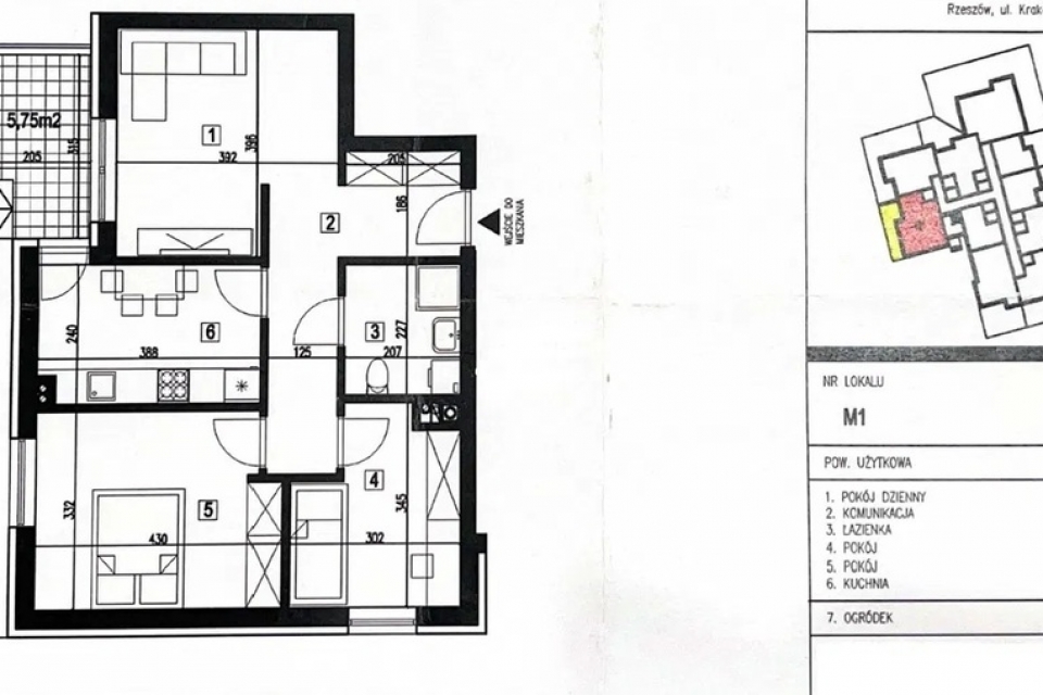 3 pokojowe- 61m2- mieszkanie na parterze na Osiedlu Dworskie Ogrody w Rzeszowie ( Krakowska )