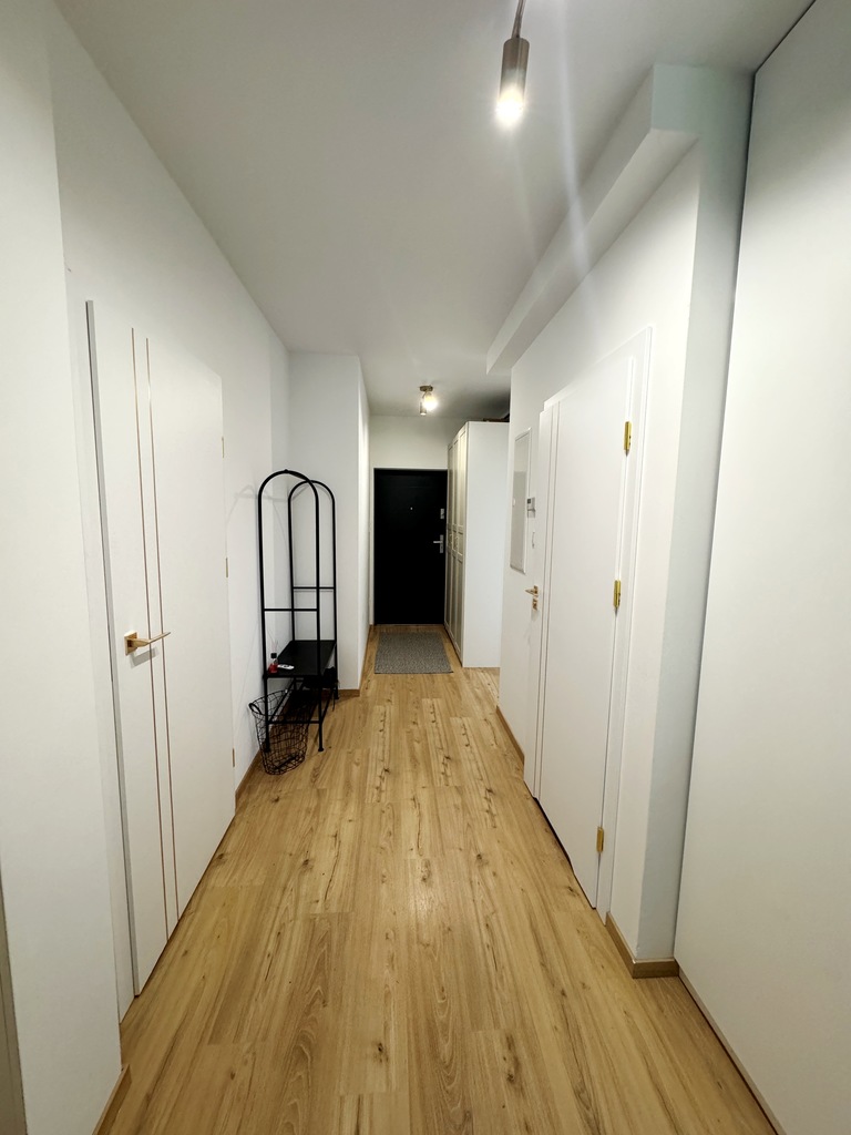 - podłogi: w pokojach i przedpokoju: panele (wodoodporne), w łazience: płytki