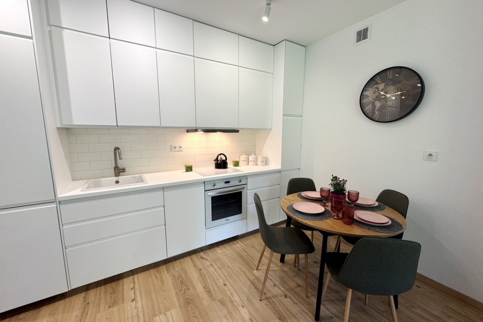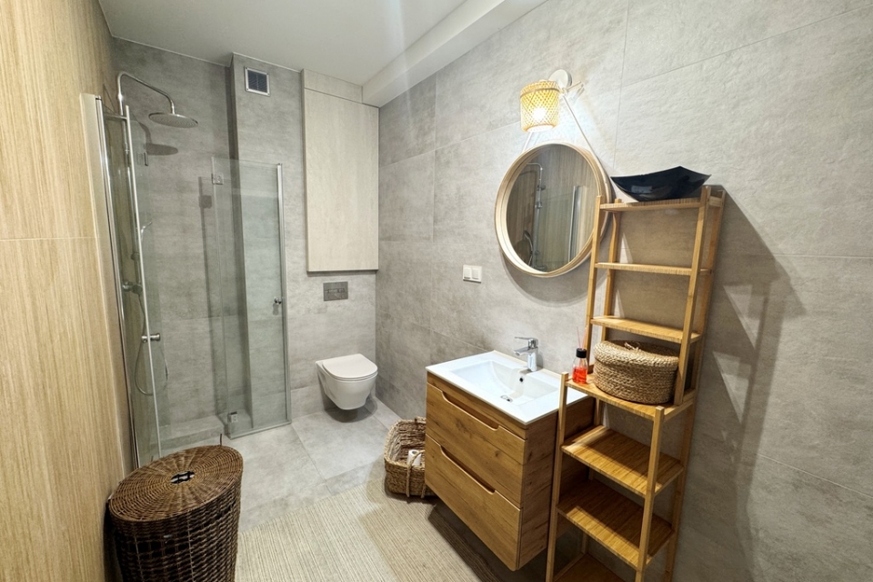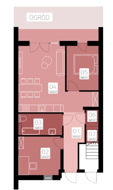 Komfortowe 3 - pokojowe mieszkanie o pow. 56,77m2, z tarasem i dużym ogrodem - 100m2. Mieszkanie składa się z salonu połączonego z aneksem kuchennym, 2 sypialni, garderoby/spiżarni, schowka, łazienki i przedpokoju.