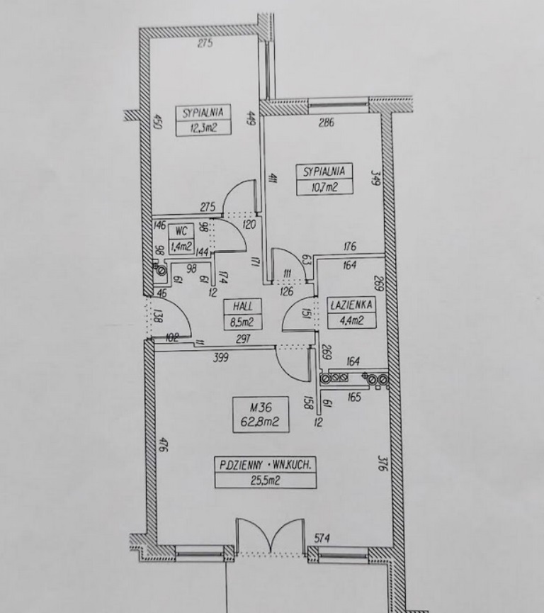 - powierzchnia mieszkania: 62,80m2