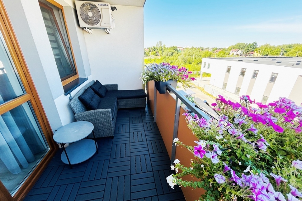 - salon z aneksem kuchennym z wyjściem na balkon