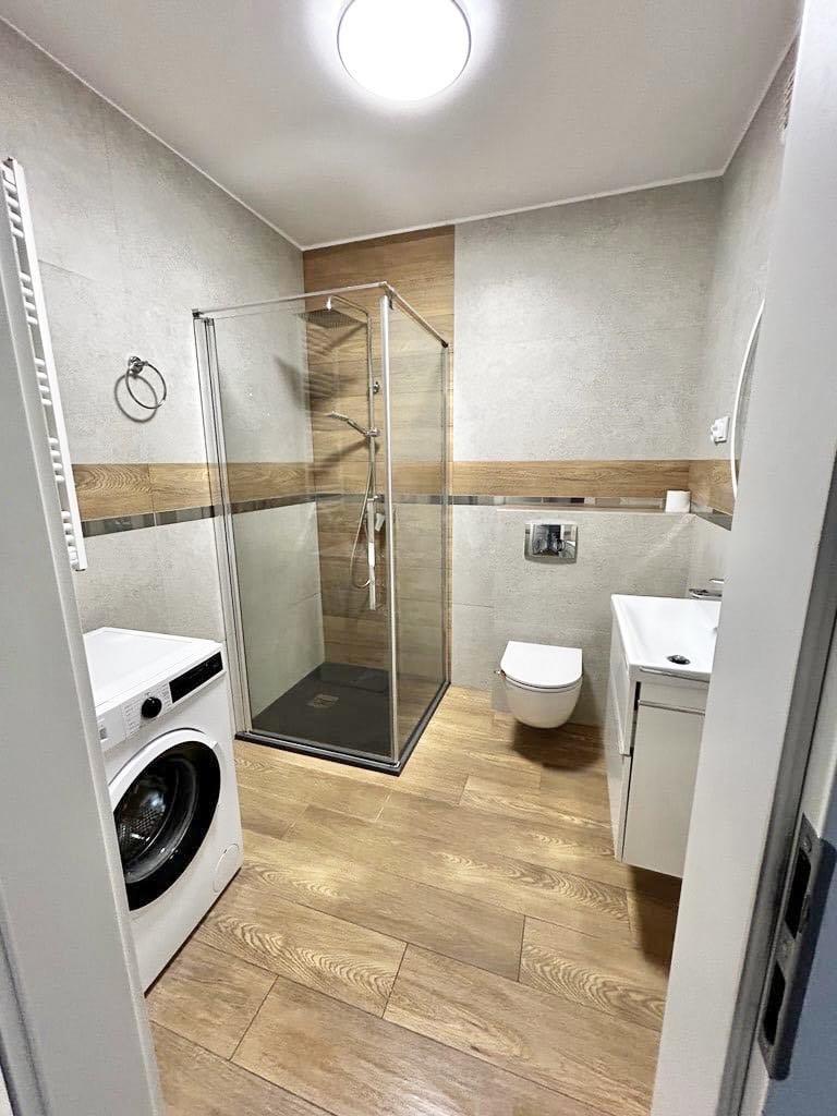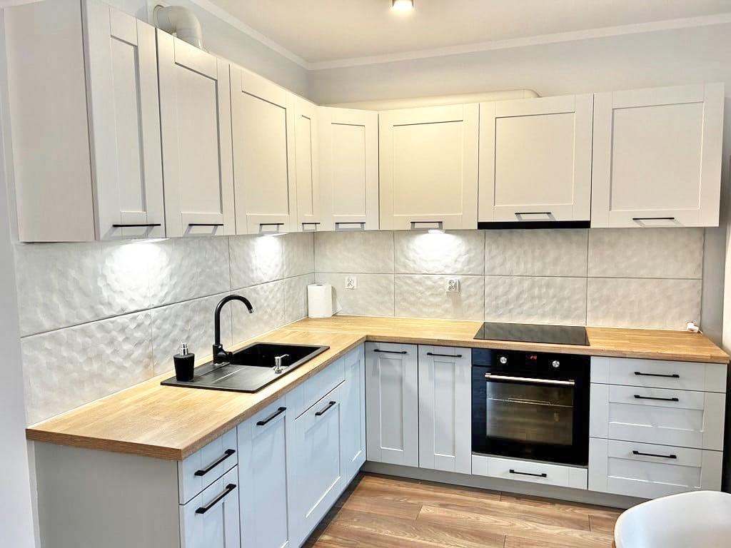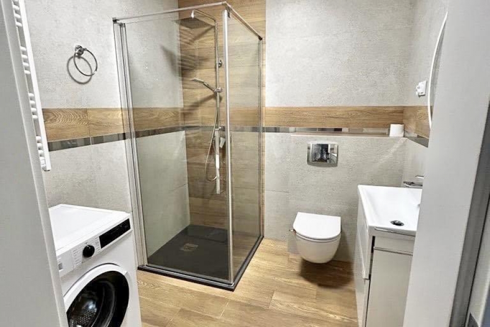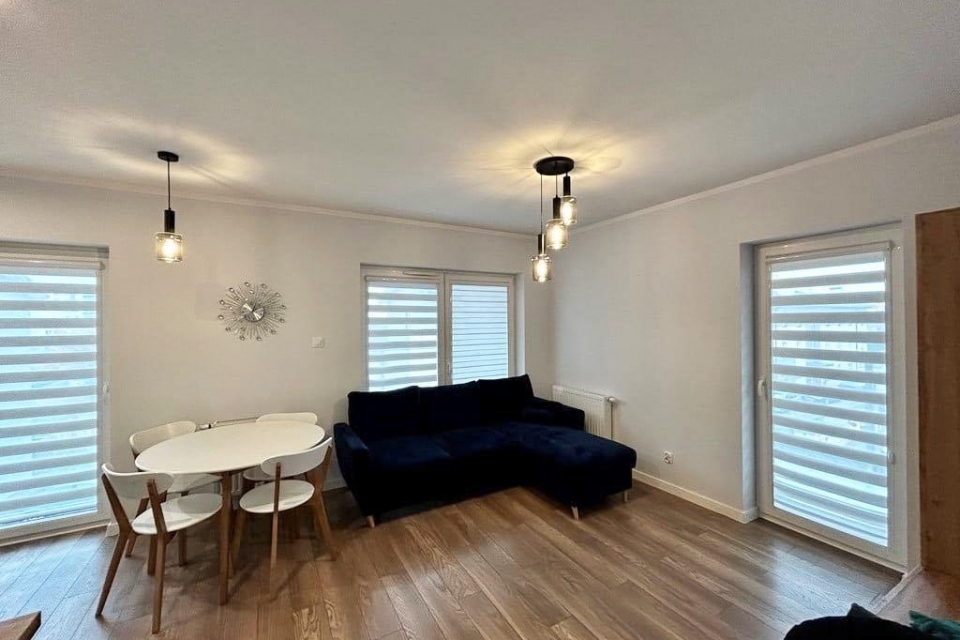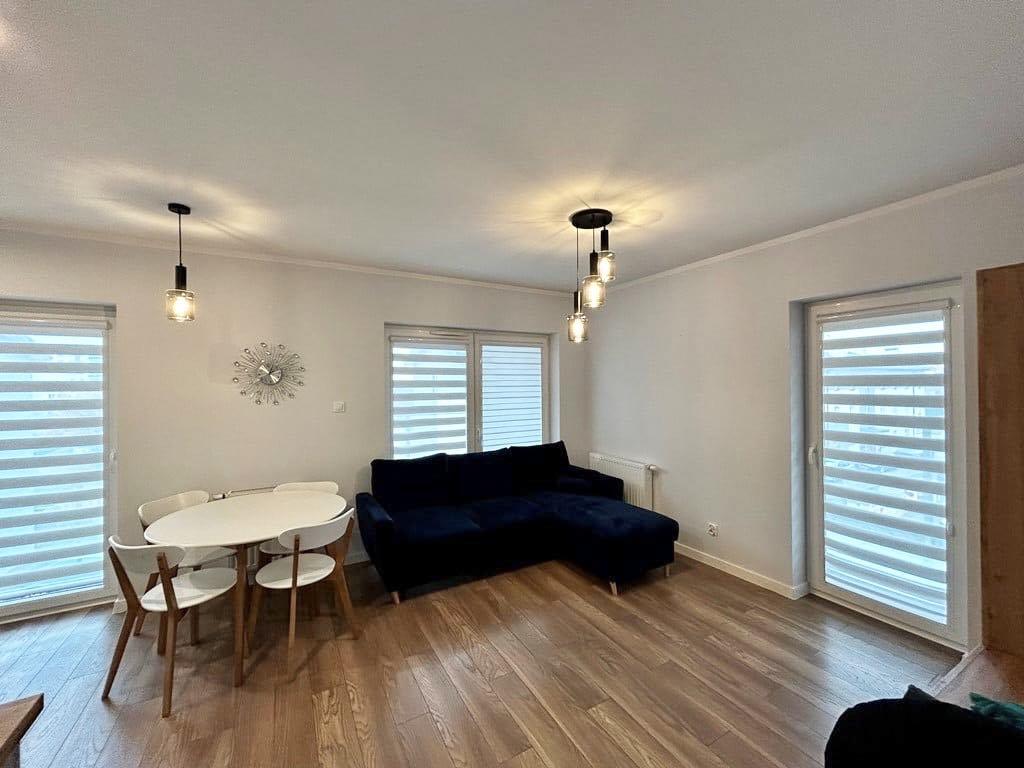 - wyposażenie: kuchnia (indukcja, piekarnik, zmywarka, lodówka) oraz łazienka (pralka) w całości, w salonie stół z krzesłami oraz kanapa